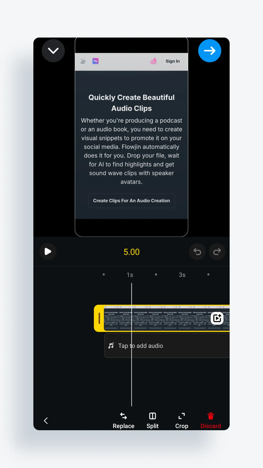 - Edit: Tap the scissors icon to trim, crop or replace part of a clip.